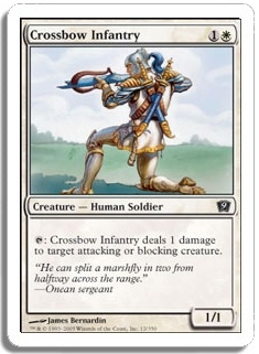 Tap: Crossbow Infantry deals 1 damage to target attacking or blocking creature.