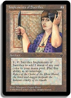 <1,T>: Sacrifice Implements of Sacrifice to add 2 mana of any one color to your mana pool. Play this ability as an interrupt.