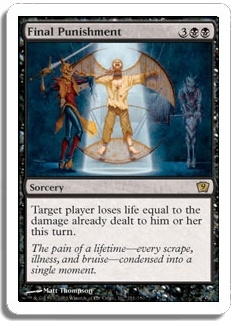 Target player loses life equal to the damage already dealt to him or her this turn.