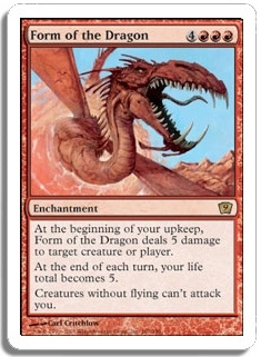 At the beginning of your upkeep, Form of the Dragon deals 5 damage to target creature or player.