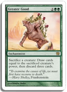 Sacrifice a creature: Draw cards equal to the sacrificed creature's power, then discard three cards.
