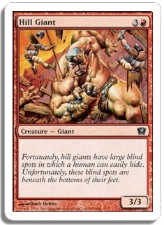 Fortunately, hill giants have large blind spots in which a human can easily hide. Unfortunately, these blind spots are beneath the bottoms of their feet.
