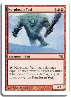 Tap: Karplusan Yeti deals damage equal to its power to target creature. That creature deals damage equal to its power to Karplusan Yeti.