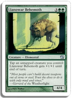 Tap an untapped creature you control: Llanowar Behemoth gets +1/+1 until end of turn.