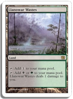 Tap: Add B or G to your mana pool. Llanowar Wastes deals 1 damage to you.