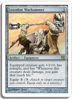 Equipped creature gets +3/+0, has trample, and has "Whenever this creature deals damage, you gain that much life."