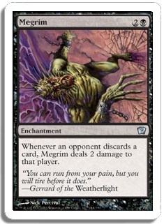 Whenever an opponent discards a card, Megrim deals 2 damage to that player.