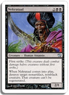 When Nekrataal comes into play, destroy target nonblack, nonartifact creature. That creature can't be regenerated.