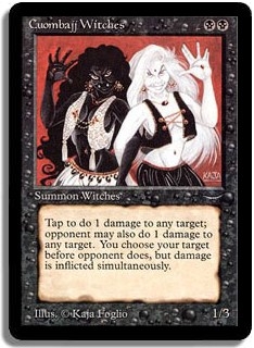 Tap to do 1 damage to any target; opponent may also do 1 damage to any target. You choose your target before opponent does, but damage is inflicted simultaneously.