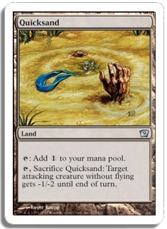 Tap, sacrifice Quicksand: Target attacking creature without flying gets -1/-2 until end of turn.