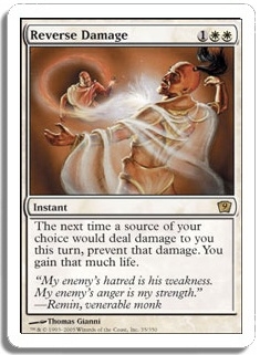 The next time a source of your choice would deal damage to you this turn, prevent that damage. You gain that much life.