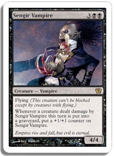 Whenever a creature dealt damage by Sengir Vampire is put into a graveyard, put a +1/+1 counter on Sengir Vampire.