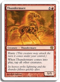 When Thundermare comes into play, tap all other creatures.