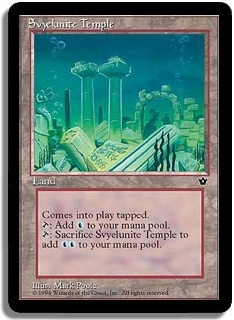 Comes into play tapped. <T>: Add <U> to your mana pool. <T>: Sacrifice Svyelunite Temple to add <UU> to your mana pool.
