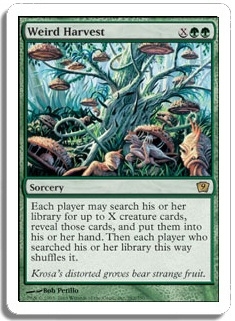 Each player may search his or her library for up to X creature cards, reveal those cards, and put them into his or her hand. Then each player who searched his or her library this way shuffles it.