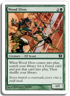 When Wood Elves comes into play, search your library for a Forest card and put that card into play. Then shuffle your library.