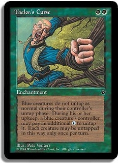 Blue creatures do not untap as normal during their controller's untap phase. During his or her upkeep, a blue creature's controller may pay an additional <U> to untap it. Each creature may be untapped in this way only once per turn.