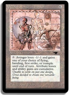 <0>: Urza's Avenger gets -1/-1 until end of turn and your choice of flying, banding, first strike, or trample until end of turn.