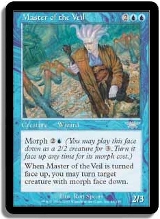 When Master of the Veil is turned face up, you may turn target creature with morph face down.