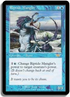 1U: Change Riptide Mangler's power to target creature's power. (It doesn't change back at end of turn.)