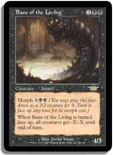When Bane of the Living is turned face up, all creatures get -X/-X until end of turn.