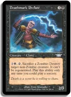 2B, Tap, Sacrifice a Zombie: Destroy target non-Zombie creature. It can't be regenerated. Play this ability only any time you could play a sorcery.