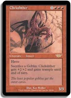 Sacrifice a Goblin: Clickslither gets +2/+2 and gains trample until end of turn.