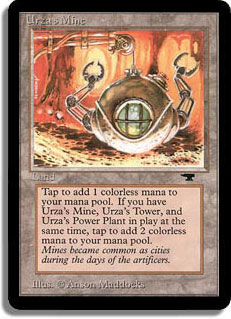 Tap to add 1 colorless mana to your mana pool. If you have Urza's Mine, Urza's Tower, and Urza's Power Plant in play at the same time, tap to add 2 colorless mana to your mana pool.