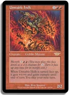 When Unstable Hulk is turned face up, it gets +6/+6 and gains trample until end of turn. You skip your next turn.