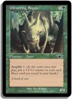 Amplify 1 (As this card comes into play, put a +1/+1 counter on it for each Beast card you reveal in your hand.)