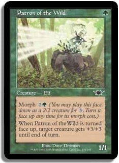 When Patron of the Wild is turned face up, target creature gets +3/+3 until end of turn.