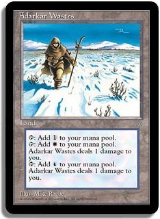 <T>: Add <1> to your mana pool. <T>: Add <W> to your mana pool. Adarkar Wastes deals 1 damage to you. <T>: Add <U> to your mana pool. Adarkar Wastes deals 1 damage to you.