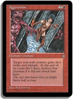 Target non-wall creature gains first strike and trample. At the end of its controller's turn, destroy that creature if it did not attack that turn.