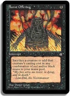 Sacrifice a creature to add that creature's casting cost in any combination of red and/or black mana to your mana pool.