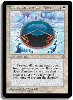 <1>: Prevent all damage against you from one white source. If a source deals damage to you more than once in a turn, you may pay <1> each time to prevent the damage.