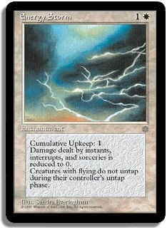Cumulative Upkeep: <1>. Damage dealt by instants, interrupts, and sorceries is reduced to 0. Creatures with flying do not untap during their controller's untap phase.