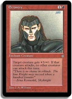 Target creature gets +3/+0. If that creature attacks, no other creatures can attack this turn.