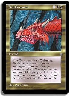 Fire Covenant deals X damage, divided any way you choose among any number of target creatures, where X is equal to the amount of life you pay. Effects that prevent or redirect damage cannot be used to counter this loss of life.