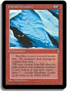 <0>: Sacrifice a snow-covered mountain. No creatures deal damage in combat this turn.