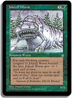 For each blocking creature assigned to Johtull Worm beyond the first, Johtull Worm gets -2/-1 until end of turn.