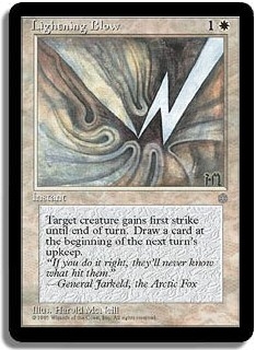 Target creature gains first strike until end of turn. Draw a card at the beginning of the next turn's upkeep.