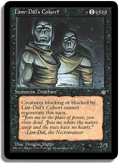 Creatures blocking or blocked by Lim-Dul's Cohort cannot regenerate this turn.