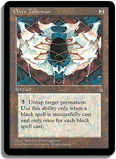 <3>: Untap target permanent. Use this ability only when a black spell is successfully cast and only once for each black spell cast.