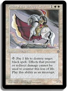 <T>: Pay 1 life to destroy target black spell. Effects that prevent or redirect damage cannot be used to counter this loss of life. Play this ability as an interrupt.