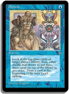 Look at the top three cards of target player's library; then, either shuffle that library or put those three cards on top of the library in any order. Draw a card at the beginning of the next turn's upkeep.