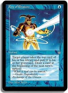 Target player takes the top card of his or her library and puts it in his or her graveyard. Draw a card at the beginning of the next turn's upkeep.