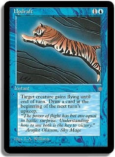 Target creature gains flying until end of turn. Draw a card at the beginning of the next turn's upkeep.