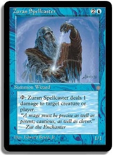 <T>: Zuran Spellcaster deals 1 damage to target creature or player.