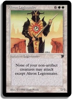 None of your non-artifact creatures may attack except Akron Legionnaire.