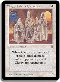 When Clergy are destroyed or take lethal damage, unless opponent pays <1> Clergy are regenerated.